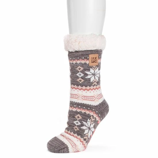 Kick back and relax in style and comfort with these super cozy women’s MUK LUKS gripper socks.